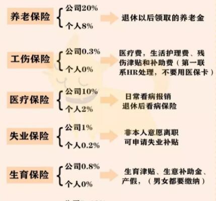 失业保险:如果因为公司破产或者被解雇等原因失业,每月可以领一笔钱作补偿。