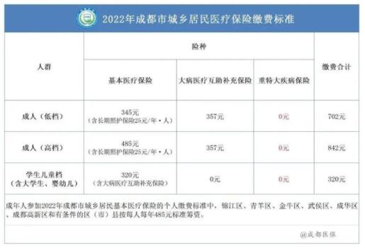 2022年城乡居民医疗保险缴费标准